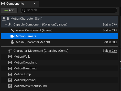 1. Add UMotionCameraComponent to your Character Blueprint or C++ class