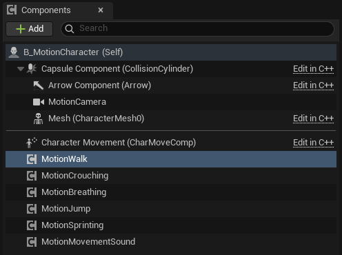 1. Add UMotionWalkComponent to your Character Blueprint or C++ class
