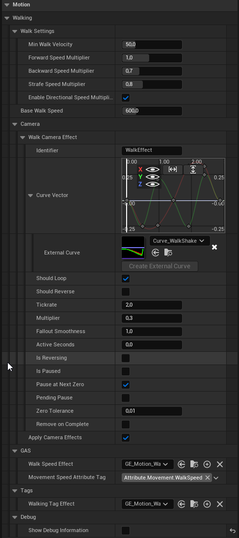 WalkCameraEffectFStructMotionCurve-Camera curve to apply during walking (subtle camera movement)-